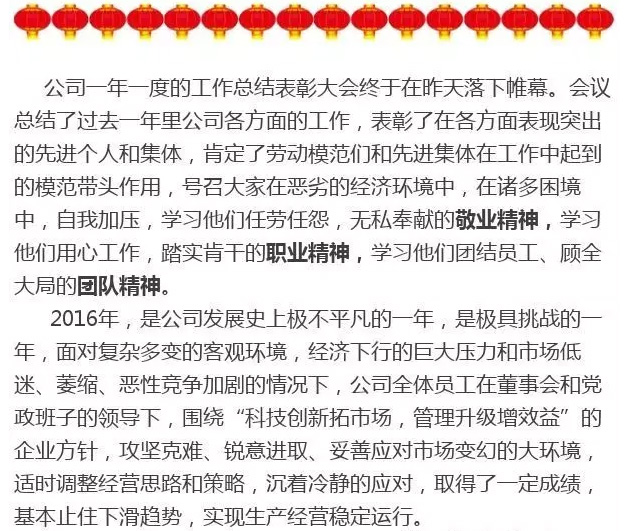 公司2016年度總結(jié)表彰大會(huì)圓滿召開